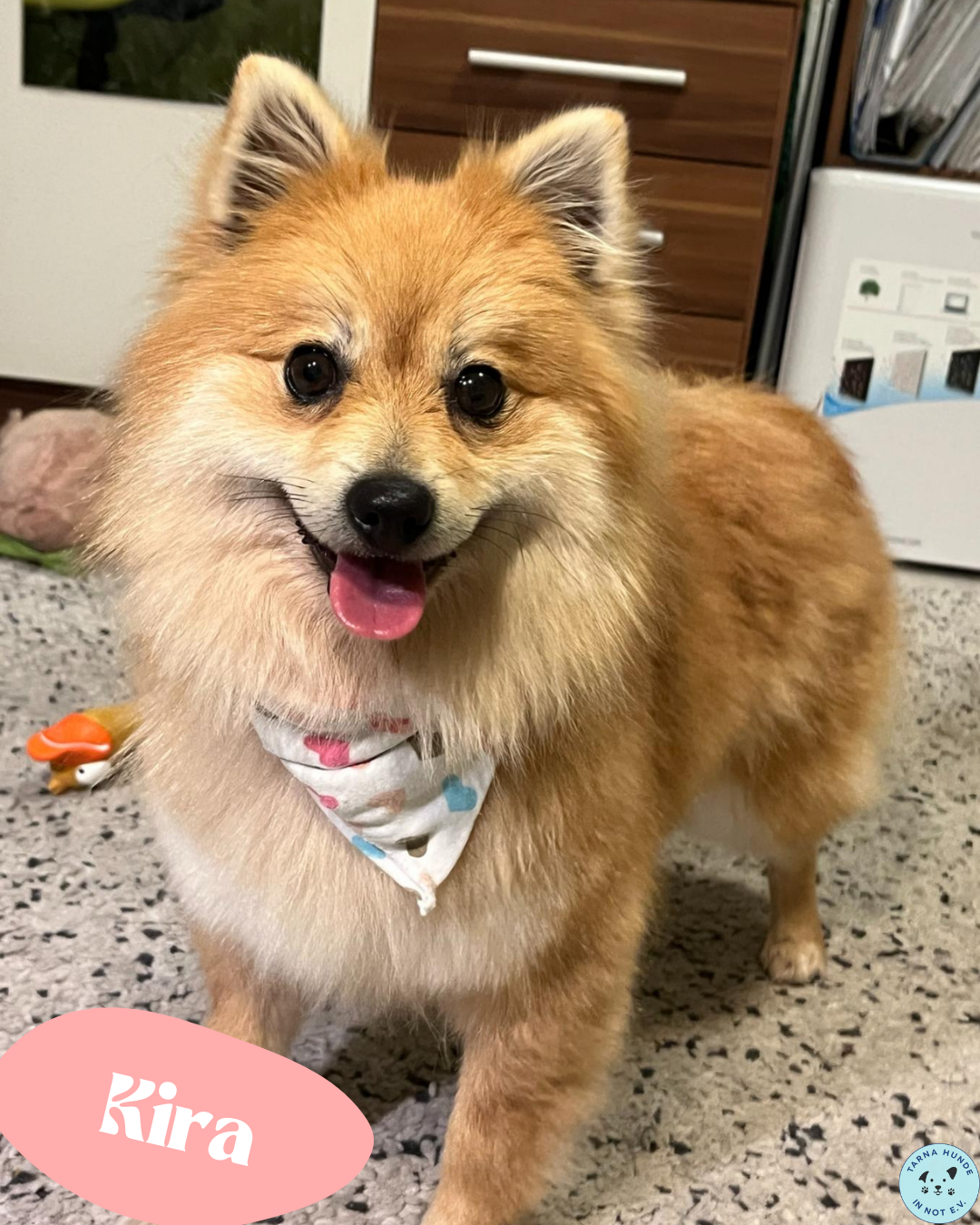 freundlich, aufgeschlossen 🩷 Hündin, kastriert 🎂 geb. 01.01.2023 🐶 Kleinspitz ⚖️ 7,4 kg / 25 cm 📍 Budapest 🇭🇺 Vermittlerin: Heike